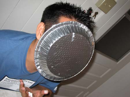 Mir – Yes, I agree. I look very hot with a pie pan on my face.