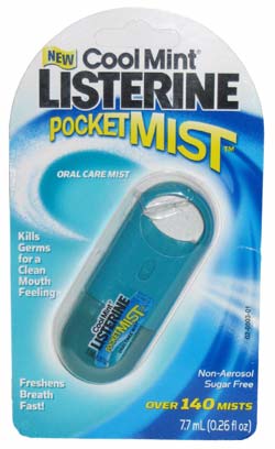 2. Spray Listerine Cool Mint PocketMist into my mouth.