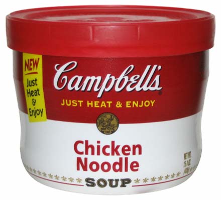 I guess since you were condensed soup in that older picture, you should’ve been slim. You now maybe a little more roly-poly, but at least you come in a microwaveable bowl, I don’t need to add water, and it takes only 90 seconds for you to be heated up.