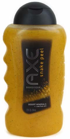 The Axe Snake Peel Shower Scrub uses desert minerals and cactus oil to deeply clean and exfoliates to remove dirt, dry skin, and possibly that incident with a mime, monkey, and a bath tub full of mayonnaise.