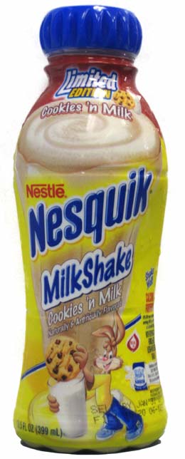 It is with this in mind that I become grateful to live in a time when cookie sandwiches not only exist, but seem to generate from some enchanted, dextrose-enhanced geyser in Yellowstone Park. With Oreo flinging Banana Split and Watermelon sandwiches all over the place, I suppose I shouldn’t be surprised that Nesquik’s taking the dive for the caboose of the cookie sandwich train, holding tight to the cabin car as it offers up these new double chocolate goods.